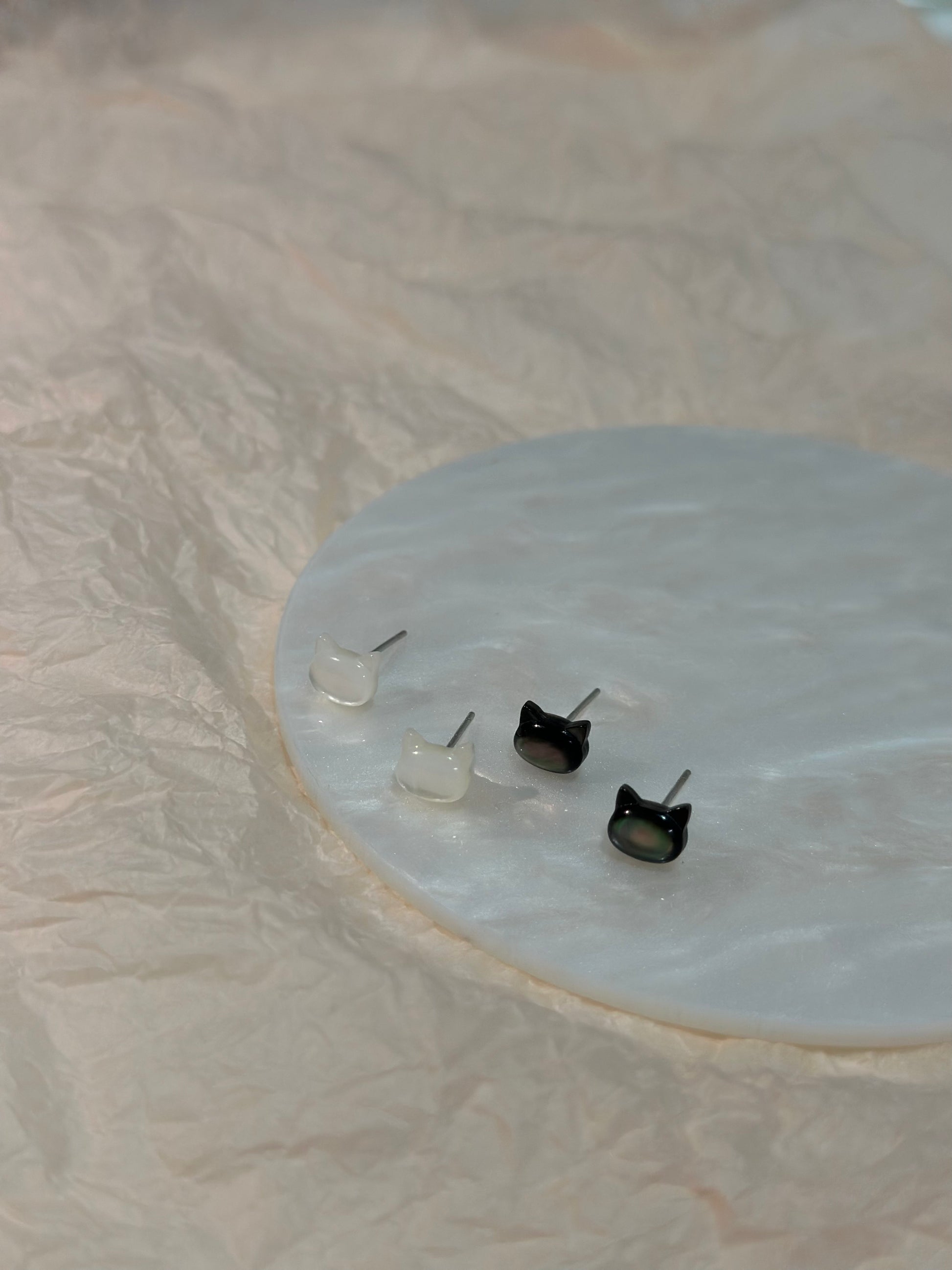 S999 pure silver cat earrings featuring elegant mother-of-pearl accents. Designed for a unique and sophisticated look, these hypoallergenic earrings are gentle on sensitive ears. Ideal for daily wear or special occasions, they effortlessly enhance your style and charm.